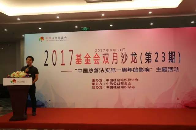 基金会双月沙龙上,慈善法专家北京师范大学社会发展与公共政策学院陶传进教授关于"中国慈善法实施一周年观察报告"这一主题,进行了演讲,他指出:公益慈善事业发展并不是靠一个《慈善法》激活活力的,《慈善法》并没有一个打开窍门、通道、拔掉活塞的作用,《慈善法》是对前面二十多年、三十多年改革公益领域的固化和为未来慢慢打通道,是继往开来的作用。