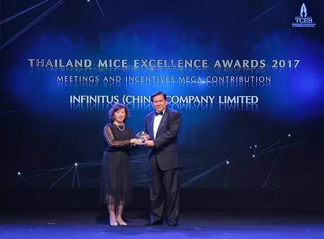 9月4日晚,在泰国曼谷皇家艾美雅典娜广场酒店举行的颁奖盛典上,无限极(中国)有限公司荣获“泰国2017年度MICE大奖”【MICE由Meetings(会议)、Incentives(奖励旅游)、Conferencing/Conventions(大型企业会议)、Exhibitions/Exposition(活动展览)和Event(节事活动)的第一个字母组成,是会展的英文缩写】,本次获得该奖项的中国企业仅有三家。这也是公司继2016年荣获“中泰MICE杰出贡献奖”后的又一殊荣。