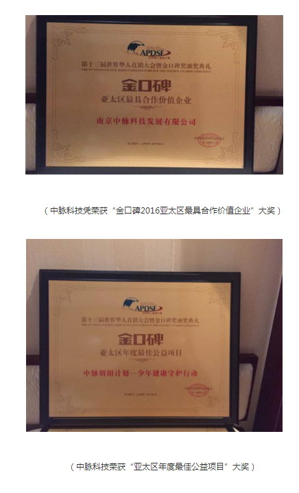 典礼上,尤为突出的是,中脉科技凭借自身品质荣获“金口碑 2016 亚太区最具合作价值企业”、“亚太区年度最佳公益项目”双项大奖,中脉健康产业集团董事局主席周希俭荣获“金口碑 2016 亚太区最具品牌价值企业家”荣誉称号!