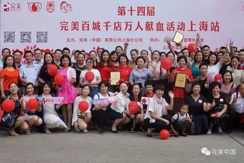 9月10日上午,由完美(中国)有限公司上海分公司主办,上海市血液管理办公室、上海市血液中心、上海市献血促进会、黄浦区卫生和计划生育委员会、黄浦区血液管理办公室共同协办的第十四届完美百城千店万人献血上海站活动在市血液中心成功举行。活动中,134名完美志愿者无偿献血29200ml。