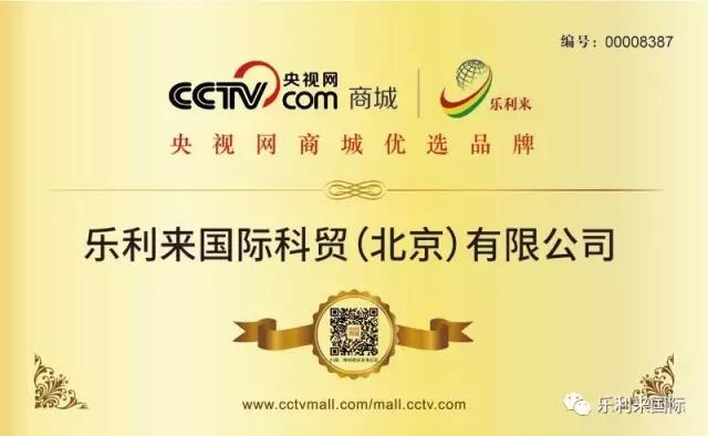 乐利来国际荣获“CCTV央视网商城优选品牌”