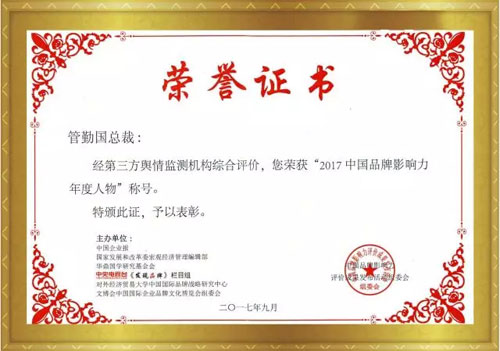 “2017中国品牌影响力年度人物”