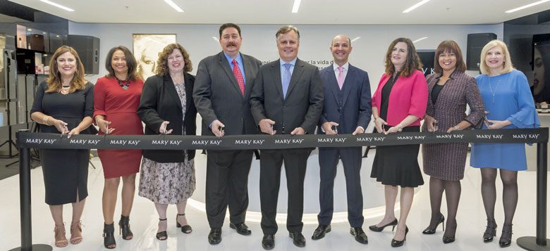 玫琳凯总裁兼首席执行官大卫·霍尔(David Holl)与玫琳凯高管为子公司开业剪彩,正式开放公司最新市场秘鲁。
