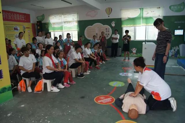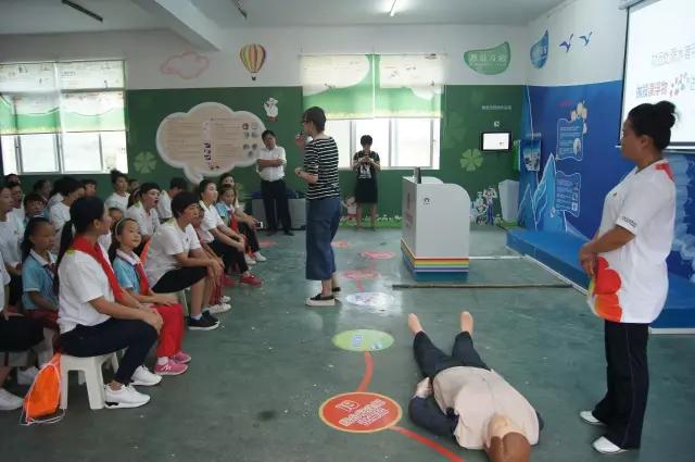 中脉志愿者和孩子们在“安全体验教室”中上安全教育课