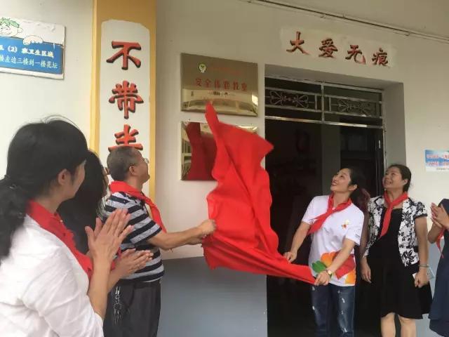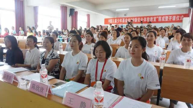 在现场嘉宾、老师、同学们的见证下,贵州省妇女儿童发展基金会安红理事长、爱心企业代表陈欣欣、黔东南州妇联主席陈晓琼将安全体验教室牌与安全体验教室钥匙模型递交给学校王关付校长。