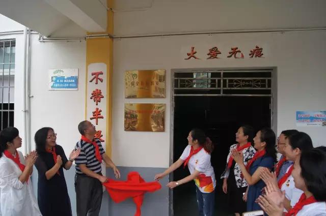 在仪式开始前,新州第三小学的学生们,为远道而来的客人系上了红领巾,表示了他们对于客人们的敬意与感谢。在校长致欢迎词后,落成仪式正式开始。