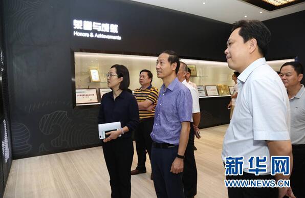 广东省经信委副主任郑勇明(前排右四)一行听取企业介绍。