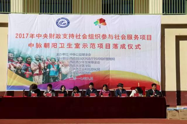 9月26日上午,“2017年中央财政支持社会组织示范项目——中脉朝阳计划项目”朝阳卫生室落成仪式于拉萨市达孜县中心小学隆重举行。