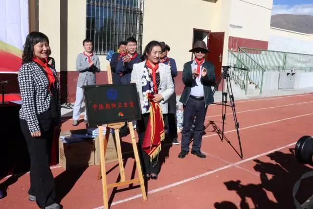 在现场领导、嘉宾、老师学生们的见证下,民政部社会组织管理局办公室调研员董红与达孜县政府副县长次吉卓玛共同为卫生室揭牌,标志着项目正式在西藏落成。