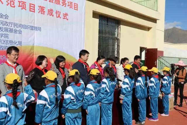 民政部社会组织管理局办公室调研员董红、西藏自治区拉萨市民政厅民间组织管理局局长杨军林、西藏自治区拉萨市工信局科长田莉、西藏青少年发展基金会秘书长助理文智霖、西藏大学医学院副教授扎西达娃、达孜县县委常务副书记贾云亮、达孜县政府副县长次吉卓玛、中脉公益基金会副秘书长邹晓玲、达孜县中心小学校长尼玛巴桑等出席了仪式。