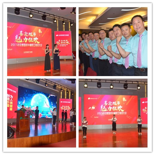 2017年9月26日下午,《2017年三季度工作总结和四季度工作部署暨欢度国庆中秋联欢大会》在九天绿科技工业园会议中心召开。集团董事长携集团领导和全体员工参加了本次大会,集团董事长黄添友先生、首席执行官于洪玖先生、集团总裁黄灿先生、药业公司副总裁刘国章先生、电商部总裁孔涛先生分别在大会上做了重要讲话和专题报告。