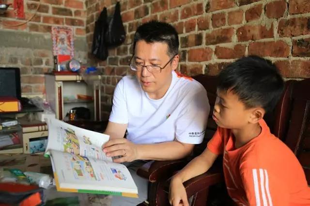 中脉公益基金会理事、中脉科技美体事业部执行副总裁邵健陪同孩子读书