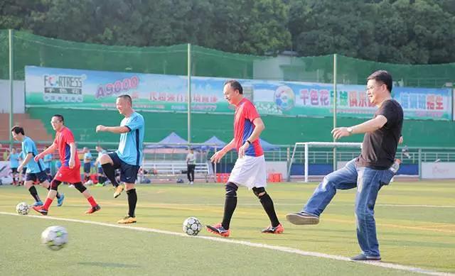 比赛正式开始!绿茵场上,大家尽情挥洒激情的汗水,传球、带球、射球……脚法丝毫不亚于专业球员。