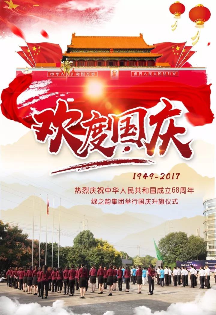 凝聚爱国情,共筑中国梦。绿之韵集团董事长胡国安表示,此次升旗仪式既是一次生动的爱国主义教育,也是公司凝心聚力激发员工爱国、爱企、爱岗情怀的重要活动,更是弘扬爱国精神、传承优良传统的重要载体。值此祖国68周年华诞,我们向伟大祖国献上最美好的节日祝福,同时,也希望全球绿之韵家人都能把爱国、爱企、爱岗之情,化作攻坚克难的精神动力,用饱满的热情和充足的干劲迎接更大的挑战,做到成绩面前不停步,困难面前不退缩,团结奋进再进取!与祖国同行,与时代同行,绿之韵集团正以“团结奋进、求实创新”的崭新的姿态迎接全新的未来,栉风沐雨,砥砺奋进,为实现“中国梦,绿之韵梦”不懈奋斗!