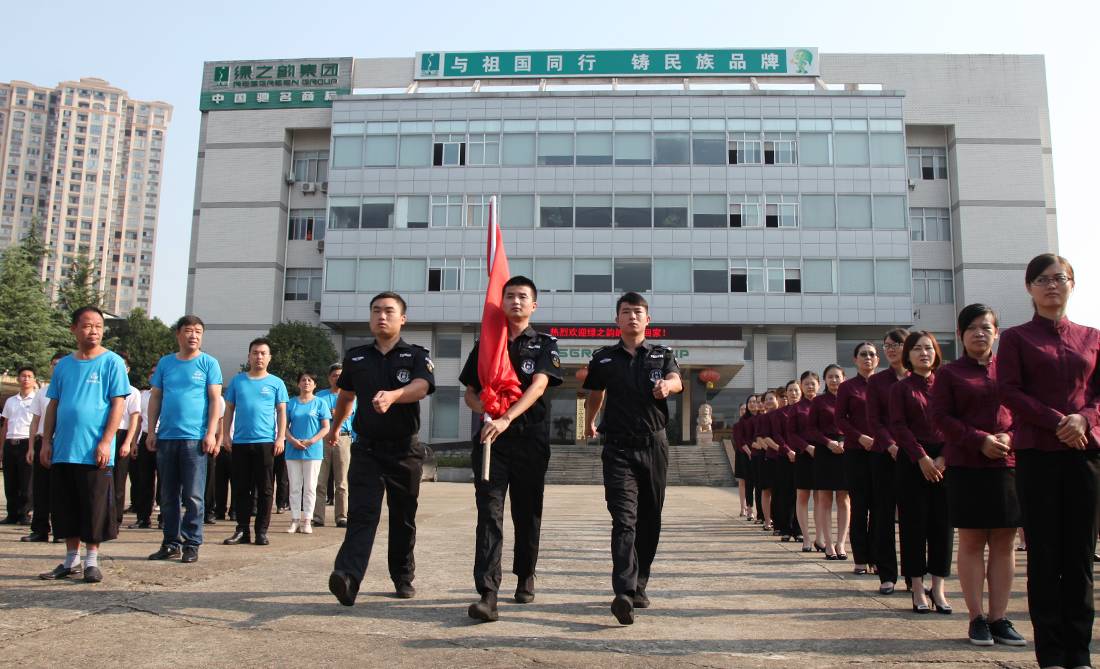 上午8点整,在庄严的气氛中,护旗手迈着矫健的步伐来到国旗台下。雄壮的国歌响起,护旗手振臂一挥,鲜艳的五星红旗冉冉升起、迎风飘扬,绿之韵全体员工肃穆而立,满怀崇敬之情向国旗行注目礼,送上了对祖国最美好的祝福。