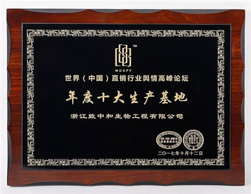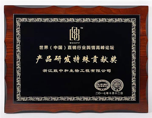 在此次论坛上,浙江致中和生物工程有限公司凭借其雄厚的研发和生产实力同时荣获了“产品研发特殊贡献奖”和“年度十大生产基地”双料大奖,凸显了致中和公司作为百年老字号企业在产品研发和生产上的优势。致中和作为工匠精神的继承者和发扬者不断创新改良酿造保健酒的技艺,经过7代传承人254年的经验沉淀,在保健酒生产领域稳固发展,成为了中国保健酒行业三巨头之一,同时也是我国最大的五加皮酒生产企业。2011年5月公司更是斥资成立了浙江致中和生物健康食品研究院,聘请了一大批业界知名专家进行科研创新和技术攻关。在公司领导的大力支持下,在行业专家的精心指导下,致中和必将成为生物健康食品领域的世界级民族品牌。