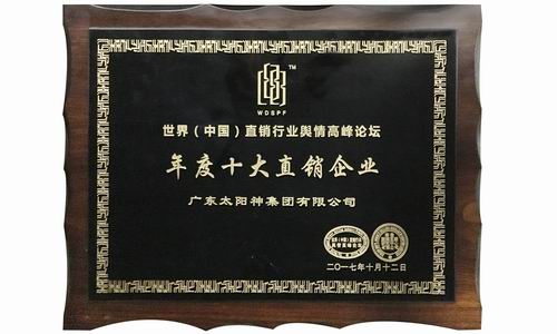 2017年10月12日,世界(中国)直销行业舆情高峰论坛暨2017年度颁奖盛典在广州隆重召开,太阳神健康产业副总经理白学锋受邀出席大会,太阳神喜获“2017年度十大直销企业”等三项大奖,这是对2017年太阳神做出的成绩的认可,也是行业对太阳神的认同。
