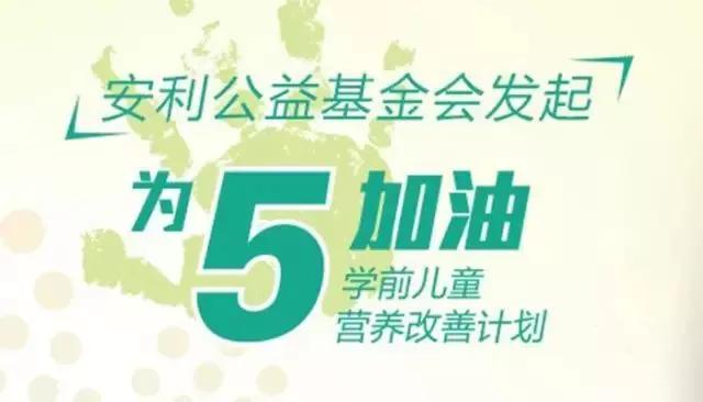近期,安利公益的重点方向是“为5加油——学前儿童营养改善计划”。针对目前中国儿童营养问题现状,安利公益基金会借助安利在全球开展儿童营养公益项目的成功经验,与中国发展研究基金会、中国儿童少年基金会、中国营养学会等机构合作开展了这个项目。