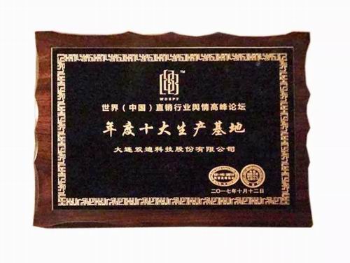 它曾先后获得“中国营养保健食品协会生产示范基地”称号、中国直销行业“年度十大生产基地”大奖;