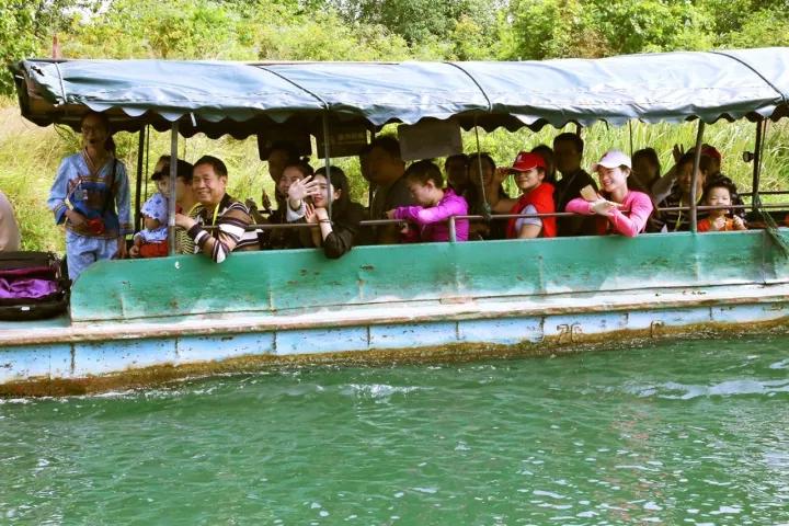 乘坐游船,荡漾湖中,棕榈欢歌、崖花水藻、丛发清绮,日月双塔等景致渐入眼帘,置身其中,倍感清新幽雅、舒适恬静,无处不体现“天人合一”的完美境界。