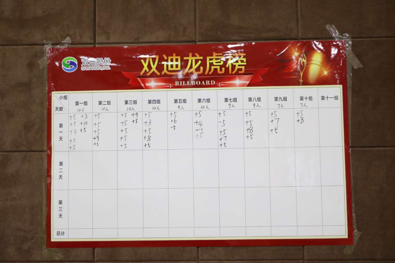 双迪家人一共被分成了十组,采取PK形式,在培训过程中相互竞争,相互激励。每组都充满了斗志,全力以赴将最好的状态展现出来,为自己的小组增光添彩。