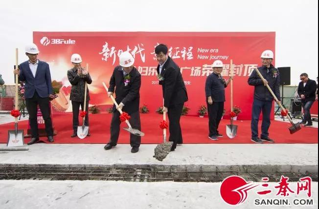 陶庆军会长一行在陕调研期间,恰逢三八妇乐时代广场在10月29日这一天荣耀封顶——三八妇乐时代广场位于西安市高新技术开发区软件新城园区天谷七路,其占地面积12.548亩,东侧为西三环,北临云水公园,交通便捷,环境优美。项目建设面积6.44万平方米,总投资5.8亿元人民币。其中地上26层,地下3层,停车位553个。三八妇乐时代广场是集三八妇乐集团总部办公、运动健身、公寓、商场餐饮和皇冠假日5星级酒店为一体的商业综合体。