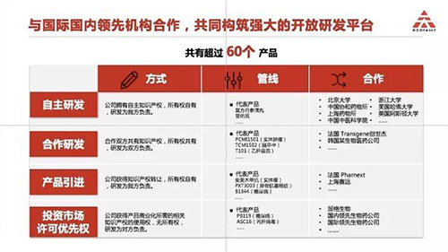 据了解,天士力围绕自主研发、合作研发、产品引进、引入产品优先市场化权益,形成了自己的研发模式。例如,天士力通过自主研发,拥有在研生物药及增加适应症多项;通过合作研发,同法国Transgene组建国际研发孵化平台创世杰生物制药公司;通过产品引进,引入上海赛远生物科技多款生物药品;通过市场许可优先权,天士力获得多款生物药产品的未来市场优先许可权益。