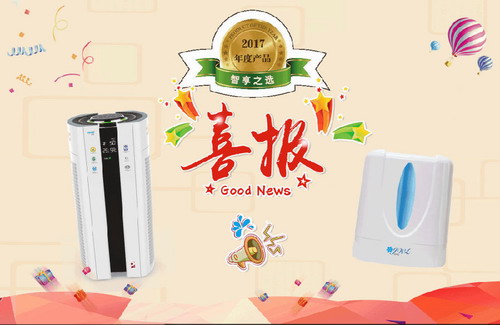 由完美(中国)有限公司生产的宜悦空气净化器、金伟连牌净水机,双双被评为2017年“智享之选”年度产品!