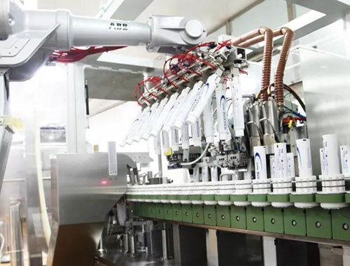 随着近日隆力奇与利乐公司、拉赫兰顿公司进行战略合作后,隆力奇将引进国际上最先进设备,加速崛起人工智能引领品牌升级。徐董指出,2017年隆力奇采购设备金额达1亿多,此次引进价值5000多万,单批次产量35吨和其他辅助设备的先进乳化设备,这些设备的应用,使隆力奇的智能化程度处于国际领先水平或行业领先地位,使产能有了倍增。配备国内一流、国际领先、高档次、高精密仪器设备的检测设备达29台(套),形成装备领先的竞争优势。目前车间内设备33台套(产线),其中车间内自动化、智能化生产、试验、检测等设备25台套(产线),占总数量的75.75%。