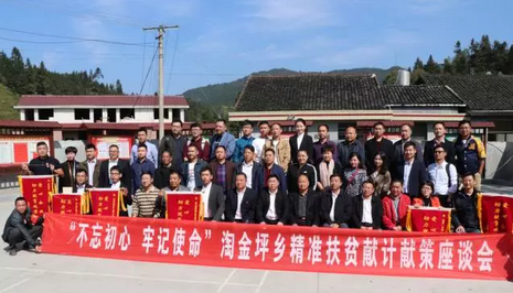 扶贫济困,践行友善。2017年11月3日,“不忘初心,牢记使命”精准扶贫献计献策座谈会在怀化市溆浦县淘金坪乡召开。湖南省怀化市工商行政管理局党组书记、局长吴富金,副局长张晓波,副局长陈宝林,副调研员杨飞,溆浦县人大常委会副主任杨日培,淘金坪乡党委书记谢正德出席会议。绿之韵集团等十余家爱心企业代表受邀参加了此次座谈会,为溆浦县淘金坪乡精准扶贫工作献计献策。