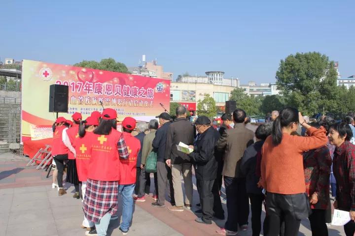 11月1日,浙江省红十字会联合康恩贝在浙江武义县江滨广场举行启动仪式,拉开了2017年“康恩贝健康之旅——心脑血管疾病防治博爱行动”的序幕。省红十字会党组成员、专职副会长黄元龙,金华市红十字会党组成员、副会长应有良,武义县人大副主任钱建国,副县长方黎明,康恩贝集团有限公司总裁吴仲时,项目实施地红十字会有关负责人,受助患者代表、志愿者代表等近200人出席了启动仪式。