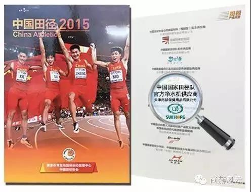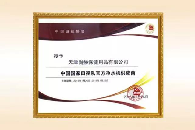 2015年,尚赫凭借优质水源成为中国国家田径队官方净水机供应商,连续三年来,为中国田径健儿营造健康生活环境,为中国田径赛程赫·彩助威,为中国体育事业的蓬勃发展贡献一份品牌力量。
