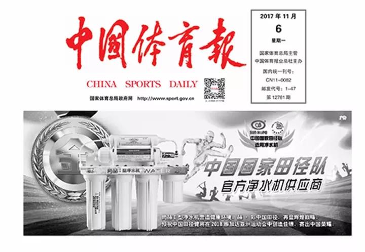 2017年11月,《中国体育报》第三年见证尚赫品牌文化建设的点滴进程——刊载尚赫成为中国国家田径队官方净水机供应商,铭记尚赫品牌文化建设又一次飞跃;尚赫I型净水机再度走进这一国家权威媒体的缤纷记载,尽品牌之力量,为推动全民“运动梦”、“田径梦”、“冠军梦”和“健康梦”加油。