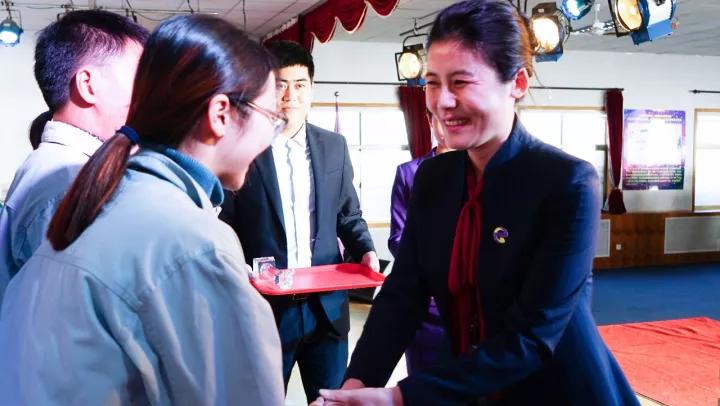【威海紫光科技园董事总裁高欣女士为岗位精英颁奖】