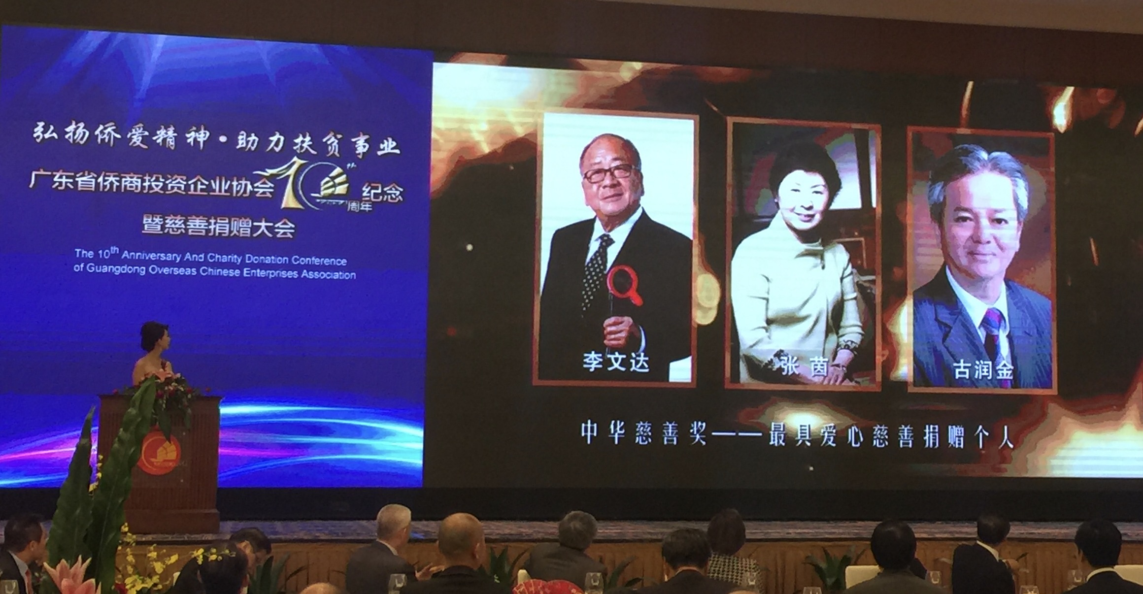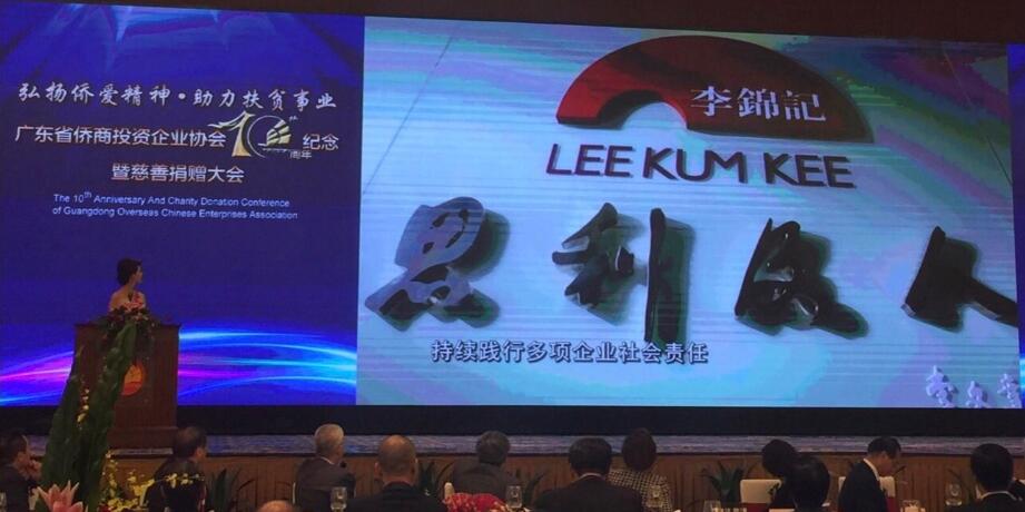 11月6日,广东省侨商会成立十周年纪念暨公益慈善晚会在广州隆重举行。国侨办、省政府相关领导、海外侨胞、侨商企业代表及主流媒体等400余位嘉宾出席了本次活动。晚会特设表彰环节,对公益慈善事业作出突出贡献的企业进行了表彰,百年酱料世家李锦记由于多年来对国家公益慈善事业的持续投入与贡献,获颁“公益慈善突出贡献奖”。李锦记中国企业事务总监赖洁珊女士代表李锦记出席并接受颁奖。