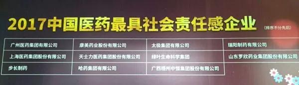 天士力医药集团股份有限公司2017年度坚持责任在肩,坚持回报社会,在员工关爱、消费者保护、环保建设、社会公益等方面做出了突出贡献,荣获“2017中国医药最具社会责任感企业”。