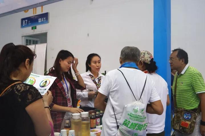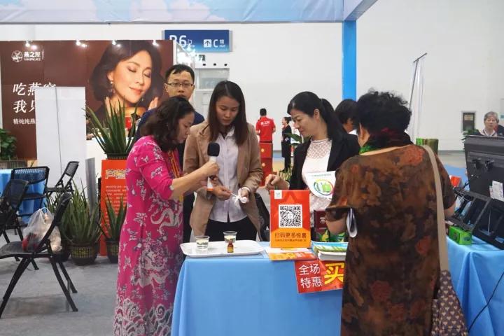荟生展区现场人头攒动,览客们纷纷前来咨询、品尝和体验有机健康产品,荟生工作人员细心为大家讲解产品种类、芦荟含量、有机种植、功效与作用,吸引了大量览客购买,整个展区热闹非凡。