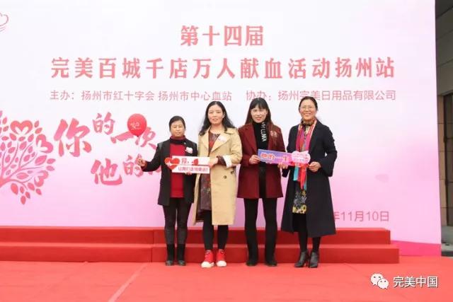 11月10日上午,“第十四届完美百城千店万人献血活动扬州站”暨“扬州完美第七届献血活动”在扬州完美日用品有限公司举行。本次活动由扬州市中心血站主办,扬州完美协办,活动共有600多名完美员工和经销商报名,成功献血376人,献血总量119,500毫升。迄今为止,扬州完美已累计成功献血2,560人次,献血总量达781,500毫升。