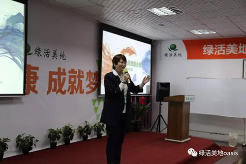 随后,绿活美地副总裁苏芝予女士发表重要讲话,苏总针对公司产品的优势和特点进行了详细、全面的阐述。苏总表示要以家庭化、生活化的方式推广公司产品,市场业绩必将取得新突破,新发展!