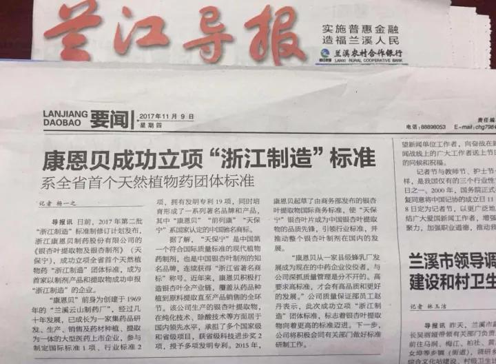 日前,2017年第二批“浙江制造”标准制修订计划发布,浙江康恩贝制药股份有限公司的《银杏叶提取物及银杏制剂(天保宁)》成功立项全省首个天然植物药“浙江制造”团体标准,成为首家以制剂产品和提取物成功申报“浙江制造”的企业。
