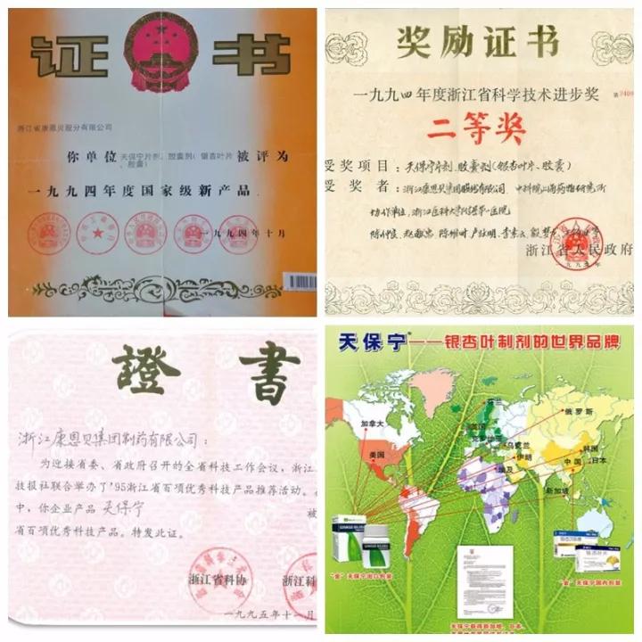 “天保宁”是中国第一个符合国际质量标准的现代植物药制剂,也是中国银杏叶制剂的知名品牌,连续获得“浙江省著名商标”称号。近年来,康恩贝积极打造银杏叶全产业链,覆盖从药品种植到原料提取直至产品销售的全环节。公司生产的银杏叶提取物,在纯化技术、除酸技术等方面居于国内领先水平,承担了多个国家级和省级项目,获省级科技进步奖2项,授予多项发明专利。2015年,康恩贝起草了由商务部发布的银杏叶提取物国际商务标准,使“天保宁”银杏叶片成为中国银杏叶提取物的品质先锋,引领行业标准,并推动整个银杏叶制剂在国内的发展。