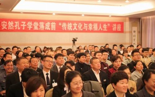在安然孔子学堂落成前,11月14日,安然集团举办了一次以“传统文化与幸福企业”为主题的专题讲座,讲座邀请国内知名的国学智慧传播者、明德书院副院长谭刚峰老师,讲解博大精深的传统文化,与安然员工一同重温经典,歌颂圣贤。