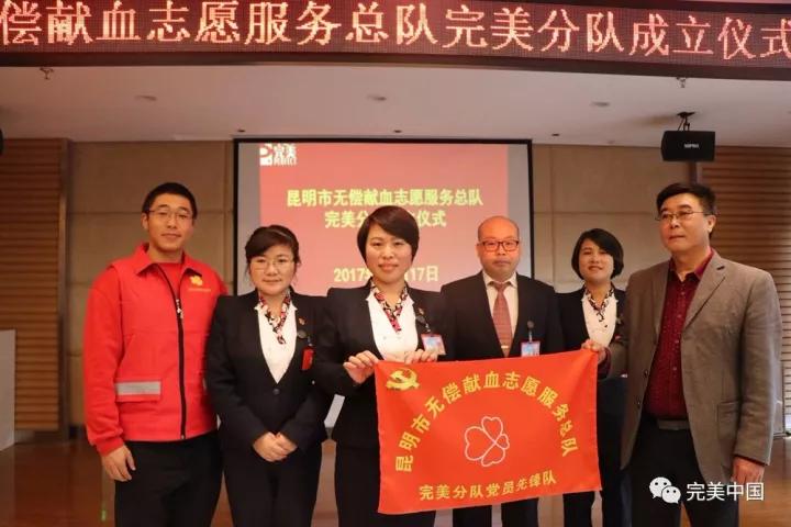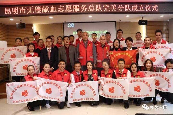 11月17日,昆明市无偿献血志愿者服务总队完美云南分公司志愿者分队(以下简称完美分队)正式成立。完美云南分公司是昆明市无偿献血志愿者协会的发起单位之一,完美分队既是昆明市第一支社会组织无偿献血志愿者分队,也是继昆明血液中心分队、稀有血型分队之后,协会成立的第三支分队。至今,“完美无偿献血志愿队”已有32支分队分布在全国各地。