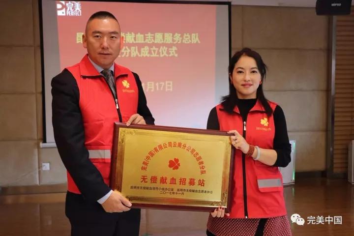 完美人的善举和付出得到了社会高度认可,云南分公司连续12年被评为“昆明市无偿献血工作先进单位”,并荣获全省唯一一家“无偿献血爱心企业”称号。2016年12月,完美云南分公司荣获2014—2015年度“全国无偿献血促进奖单位奖”,是昆明市唯一一家获此殊荣的企业。
