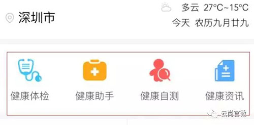“云尚大健康”依托电子商务平台,以智能化、数字化管理为核心,为用户提供健康产业链上的各环节服务,包括在线问诊、预约挂号、健康检测、健康管理、养生、健康商城等服务,打造一个共享的大健康医疗生态圈。
