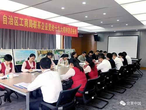 罗凤鸣带领广西分公司员工一起学习党的十九大精神,勉励企业勤发展、勇创新,强化诚信意识,积极开展党建工作,发挥党员先锋模范作用。