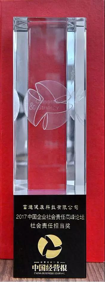 此外,大会还颁发社会责任担当奖、社会责任最佳实践奖、社会责任新锐奖和优秀模式创新奖四个奖项,富迪健康科技有限公司获得“社会责任担当奖”殊荣。