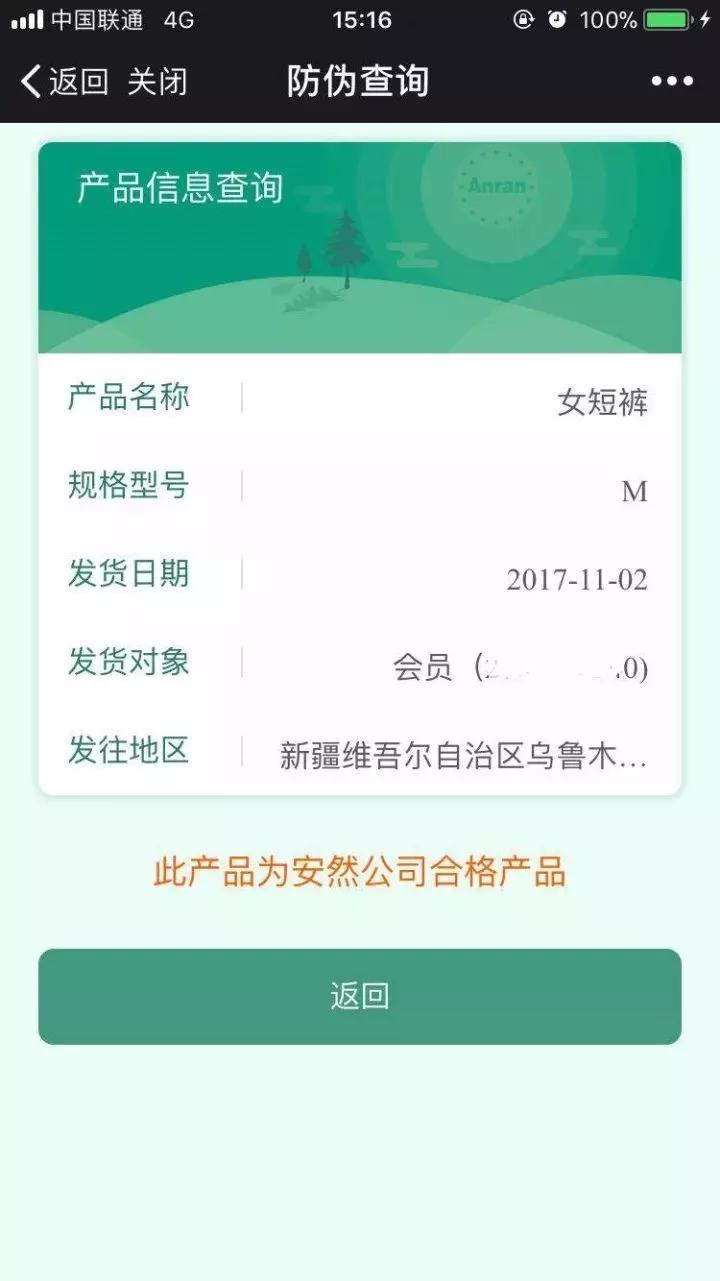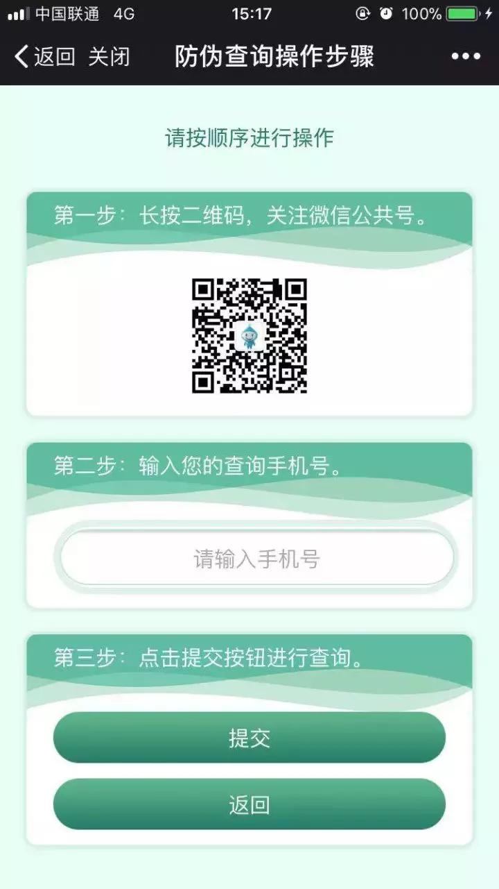 查真伪。在<安然云服务>公众号下方的“产品查询”,可以让您清楚的核对您手中宝贝的各类信息,以及防伪查询,输入订货时预留的手机号码,点击“提交”,宝贝的来龙去脉即可清晰呈现。