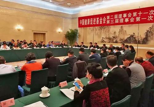 11月26日,中国健康促进基金会第二届理事会十一次会议暨第三届理事会第一次会议在全国政协礼堂银厅召开。民政部李波局长,国家卫生计生委宣传司姜雯处长,原总后勤卫生部部长、中国健康促进基金会第一、第二届理事长白书忠,原空军卫生部部长、中国健康促进基金会第一、第二届副理事长陈义勤,原第二炮兵后勤部卫生部部长、中国健康促进基金会副理事长兼秘书长常映明,原军事医学科学院副院长、中国健康促进基金会第二届副理事长徐卸古,金天国际董事局主席祖明军、金天御源健康发展有限公司副总经理马建钢及理事会30余位成员代表出席会议。