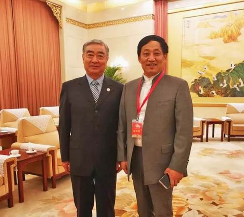 (原空军卫生部部长、中国健康促进基金会终身名誉副理事长陈义勤与金天国际董事局主席祖明军 合影)